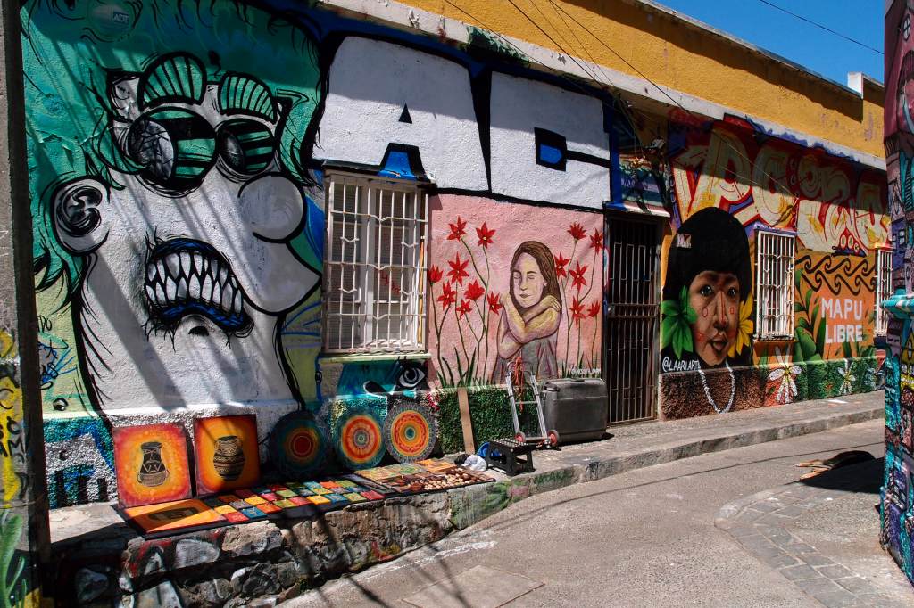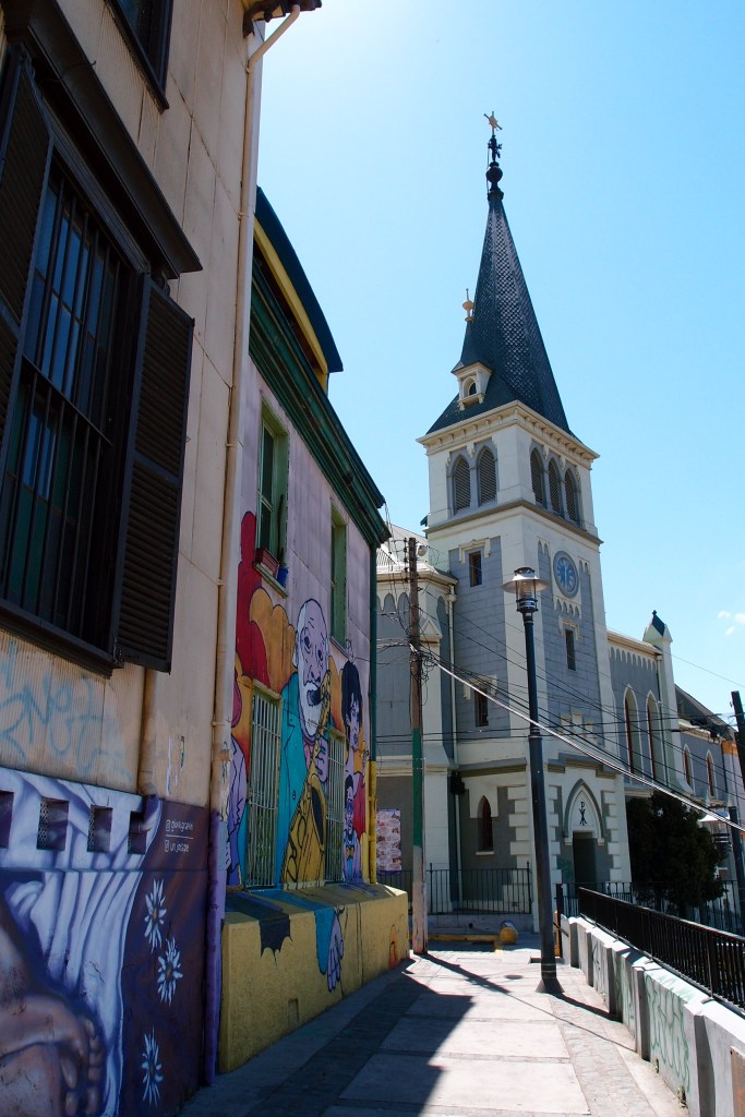 Back in Concepcion Hill, there were houses with their front facade completely painted, block colours and older buidlings that had some artistical charm. I liked the contrast between place to place which I think adds to the feeling of different puzzle pieces fitted together to make this Hill. There were some stores with local handicrafts and also sellers on the paths around the town. I was surprised that there weren’t more stores, cafes and restaurants. I became aware of the disparities in society in Chile on my trip but don’t know enough to write anything further. Perhaps this is related? Or maybe it’s left like this so as not to disturb the bohemian life?